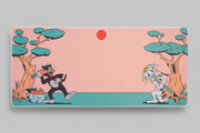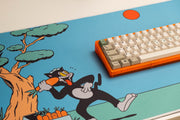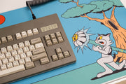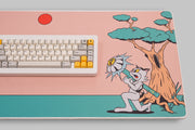 From the designer: Both two characters have been inspired by my own cats which ironically i am allergic to them. You might wonder what the heck N.Malee means. It's kind of a common name from a traditional Thai song about cats but the name of N.Malee is an owner's name. The set up scene is from my interpretation that both Bixby and N.Malee usually play together and sometimes it's going to be a mess in my garden. Both two colors were intentionally created by concerns on a variety of mechkey users that have different keyboard's color and want to shuffle their boards with different colors. The center of the Deskmat will not block the illustration of both two characters.