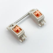 Implementing a patented technology, kin25 of TX Keyboard has improved the design of Cherry clip-ins to minimize rattling and prevent wire pop-out (using stab stoppers included with the set). The patented design features a double shot stabilizer stem with a POM outside and TPU & POM mixture inside. This mixture helps to minimize wire rattle and bottom out noise.
