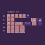 The novelties pay homage to traditional RPG classes and the musical superstar monster. The keycap set features extensive kitting and compatibility with popular community layouts. A Latin alpha kit is available for those that prefer no sublegends or to pair with the extensive 40s kit.