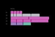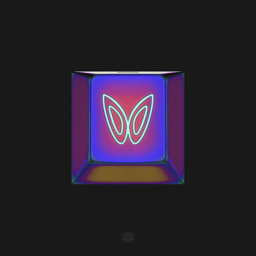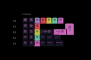 Keylabs artisan: Aluminum base anodized to match the modifiers dark purple and randomly infilled with a combination of two of the pink, green, purple, yellow, and red accent colors from the set. There are 20 possible combinations.